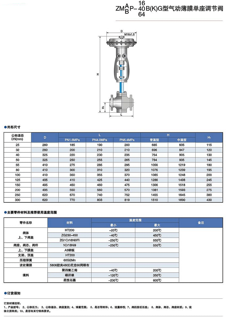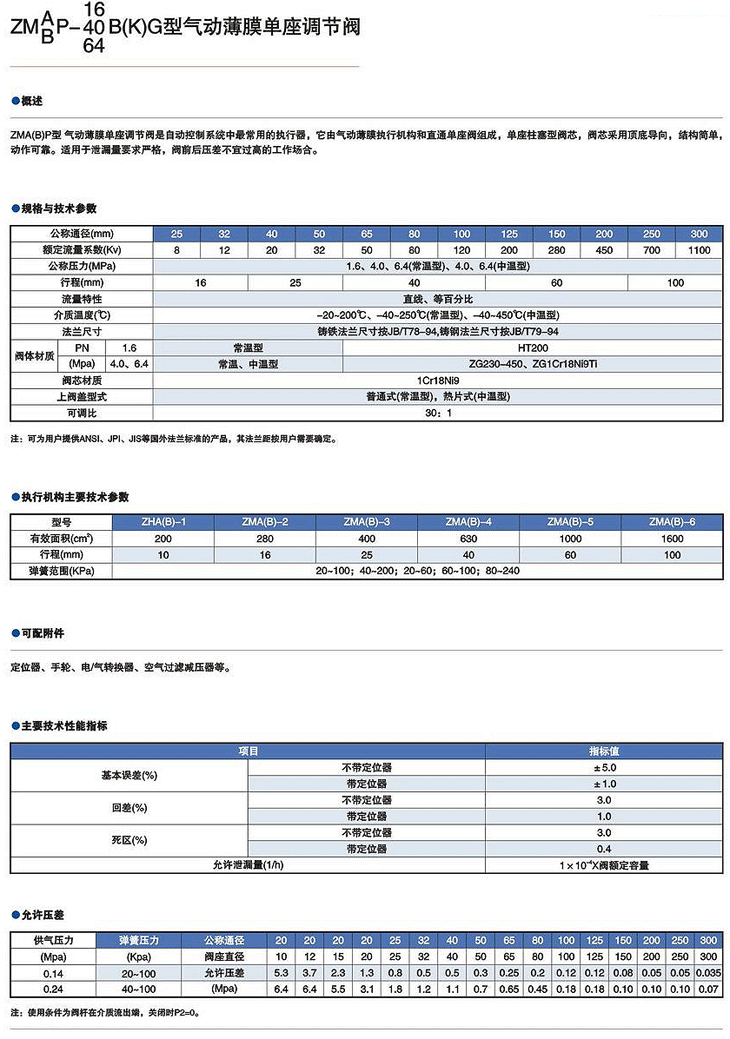 ZMA/BP-16 40 64B(K)G型氣動薄膜單座調節閥