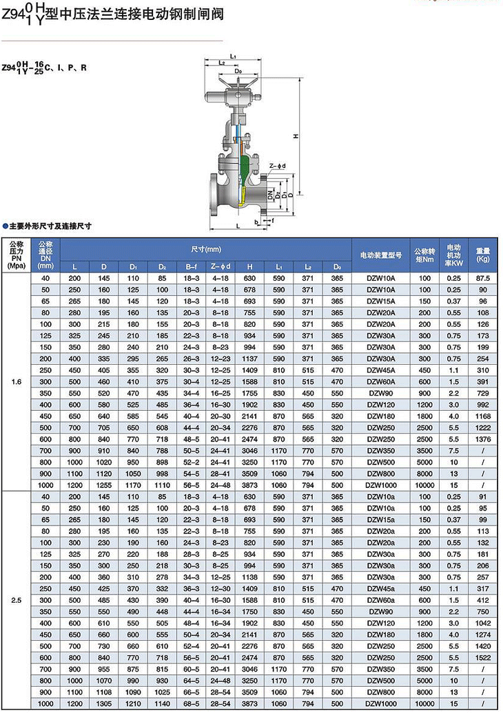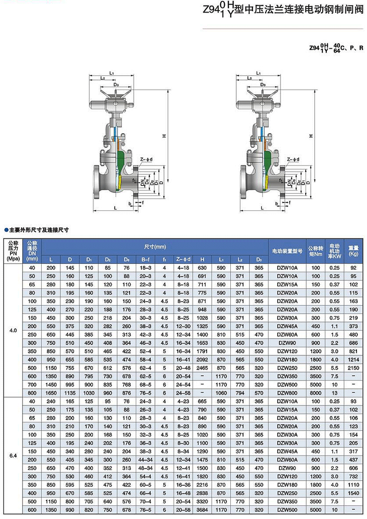 Z940/1H/Y電動中壓法蘭連接閘閥 |